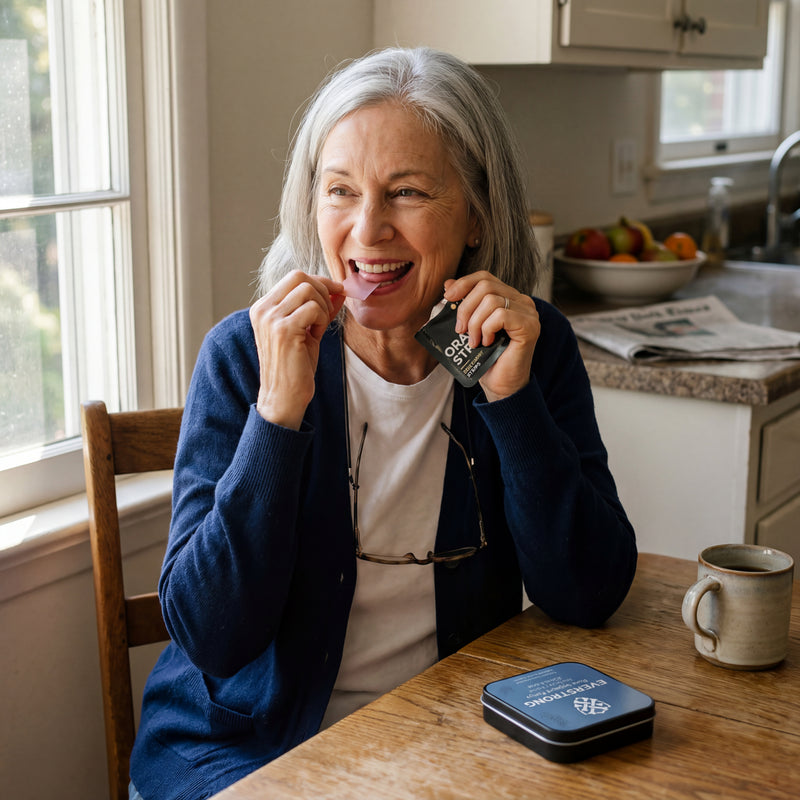I watched my mother break her hip at 72 and she never walked again. That image haunted me every single day. I was taking 6 different supplements every morning - calcium, D3, K2, magnesium - I couldn't keep track anymore. EverStrong has everything in one strip and I actually feel like my body is absorbing it. I can get down on the floor to play with my granddaughter now. That's worth everything to me.